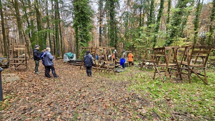 Hier ein paar Eindrücke vom Sonntag den 09. November 2025, beim Bau von mehreren „Drückjagdböcke“ in Breitenbrunn.